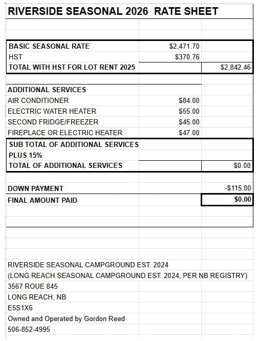 Riverside Seasonal Campground 3567 Route 845, Long Reach, NB E5S 1X6